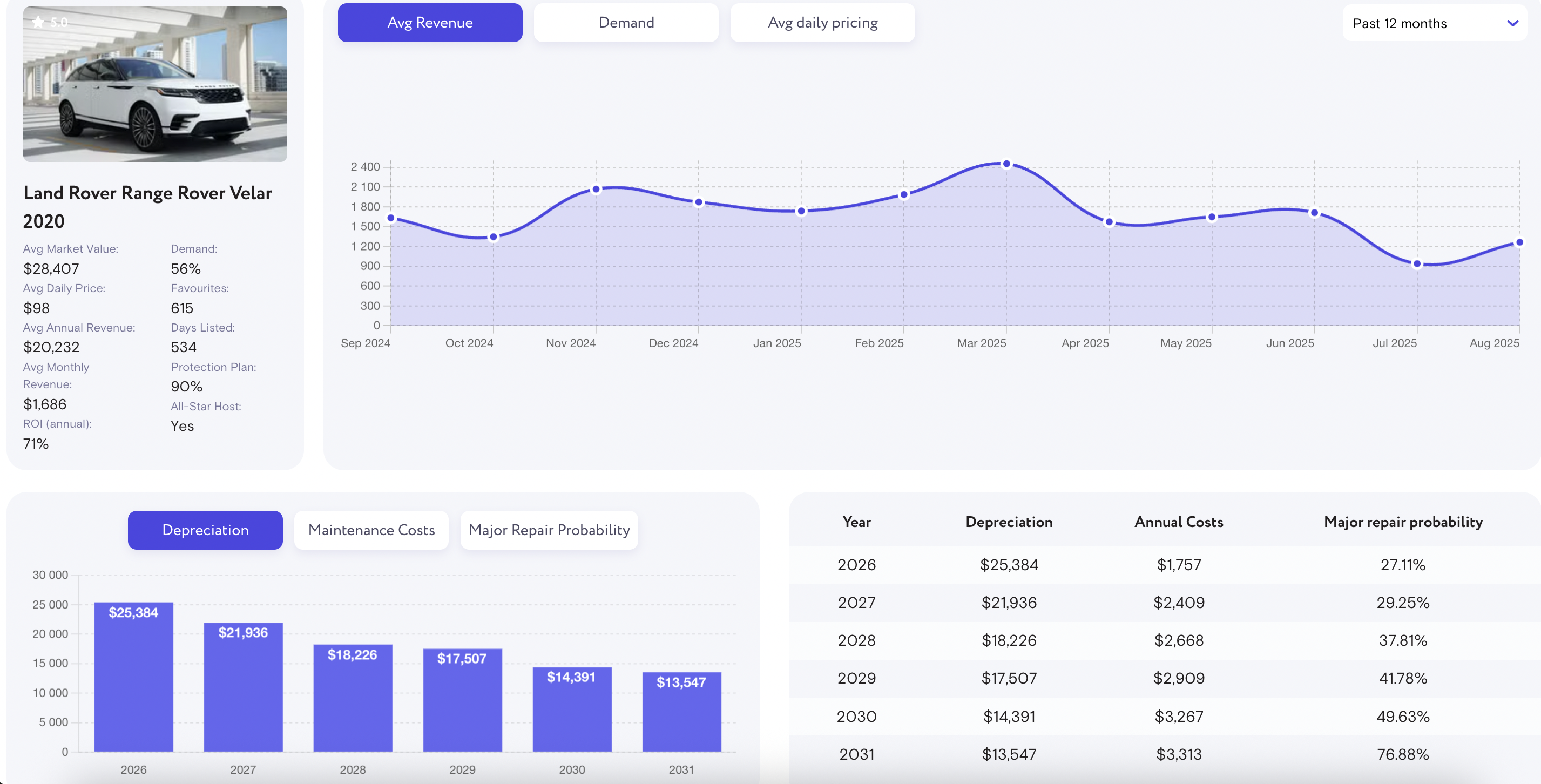 A complete financial picture includes vehicle depreciation and maintenance costs. Using RentScout, hosts can analyze: